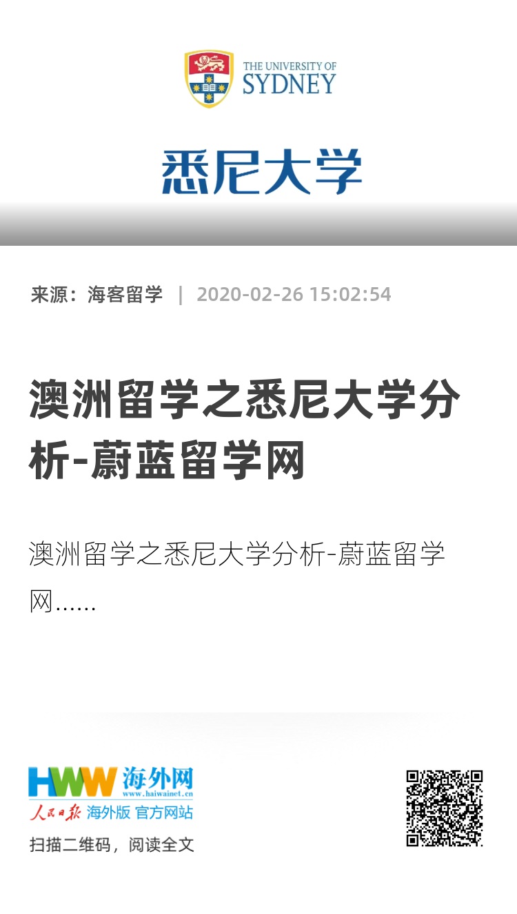 澳洲留学之悉尼大学分析-蔚蓝留学网