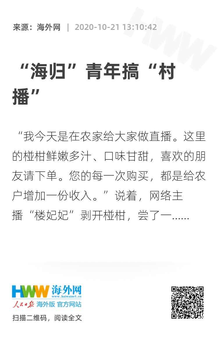 《 人民日报海外版 》( 2020年10月21日 第 10 版)