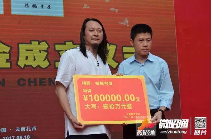 在活动现场,在40余名嘉宾与上千群众的见证下,植槐基金正式成立,云南环宇企业向基金捐赠了10万元物资及活动举办经费,全国十余名企业家向基金捐款,共筹得物资662960元,善款534694元;并对全国或全省知名的书画家捐赠书画进行现场拍卖,拍卖的141260元全部纳入植槐基金;并现场对今年考取大学的四名农村学子发放每人2000元的资助金。